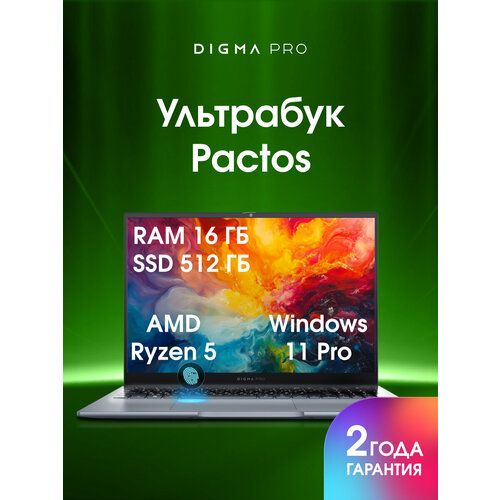 Найти - Ноутбук Digma Pro Pactos Ryzen 5 7530U/16Gb/SSD512Gb/16/IPS/WUXGA/W11Pro/dk. grey/5500mAh