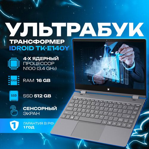 Найти - Ноутбук и Планшет 2в1, iDROID TK-E140Y, 14 Intel N100 (3.4 GHz, 4 ядра), RAM 16 GB, SSD 512 GB, Windows 11 Pro