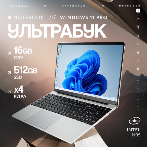 Найти - 15,6 Ноутбук для работы и учебы, RAM 16 ГБ, SSD 512ГБ, IPS Full HD 1920x1080, Intel N95, Windows 11, Серый