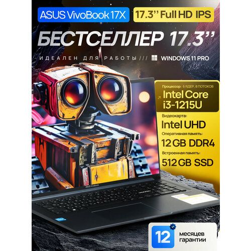 Найти - 17.3 Ноутбук ASUS VivoBook 17X, IPS, Intel Core i3-1215U (4.40 ГГц), RAM 12 ГБ, SSD 512 ГБ, Intel UHD Graphics, Windows 11 Pro + Office 2021, Русская раскладка