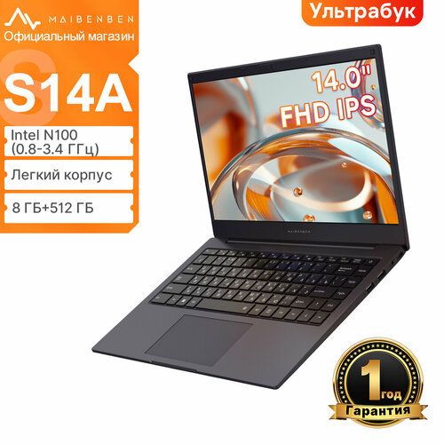 Найти - Ноутбук MAIBENBEN S14A Intel Processor N100, 14 дюймов, 1920*1080(FHD), 60Hz, NTSC 45%, RAM 8 ГБ, SSD 512 ГБ, Intel UHD Graphics, Linux, Тёмно-синий, Русская раскладка