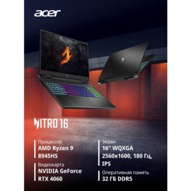 Найти - Ноутбук Acer Nitro 16 (AN16-42-R3S3) / 16/ AMD Ryzen 9 8945HS / 32 Гб DDR5 / 1 Тб SED SSD / без ОС (NH. QSLCD.006)