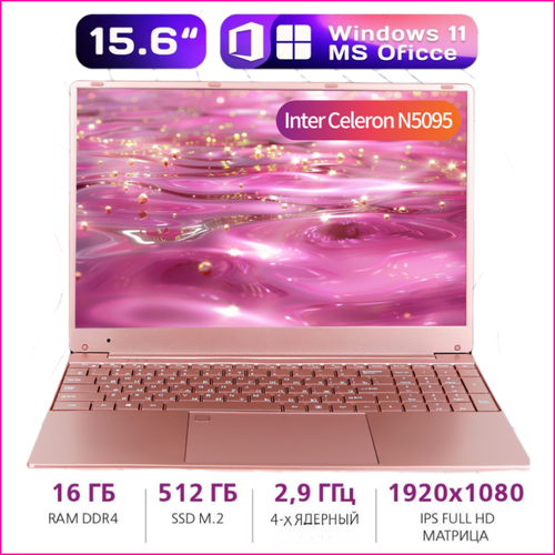 Найти - 15,6 Ноутбук для работы и учебы, RAM 16 ГБ, SSD 512 ГБ , IPS Full HD 1920x1080, Intel N5095, Windows 11, Розовый золото