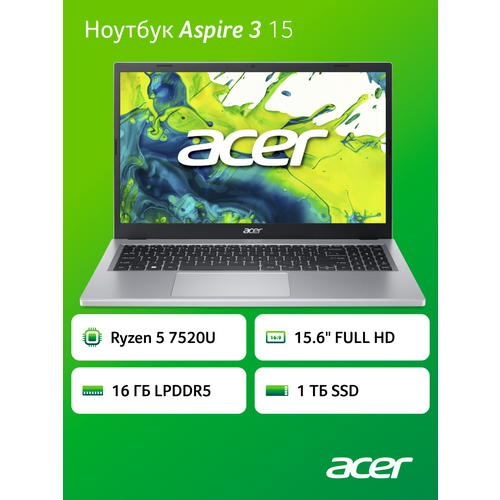Найти - Ноутбук Acer Aspire 3 (A315-24P-R2C9) / 15,6/ AMD Ryzen 5 7520U / 16 Гб LPDDR5 / 1 ТБ SSD / без ОС (NX. KDECD.00Q)