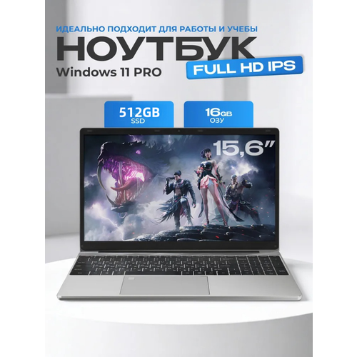 Найти - Ноутбук 15.6, Intel Celeron N5095 (2.9 ГГц), RAM 16 ГБ, SSD512GB, Intel UHD Graphics, Windows 11 серый Русская раскладка