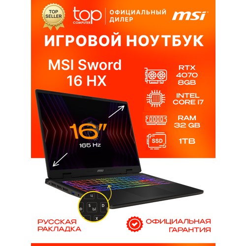 Найти - Ноутбук MSI Sword 16 HX B13VFKG 16 FHD+ IPS/Intel Core i7-13700HX/32GB/1TB/RTX4070-8GB/noOS