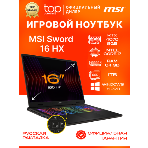 Найти - Ноутбук MSI Sword 16 HX B13VFKG 16 FHD+ IPS/Intel Core i7-13700HX/64GB/1TB/RTX4070-8GB/Win11pro