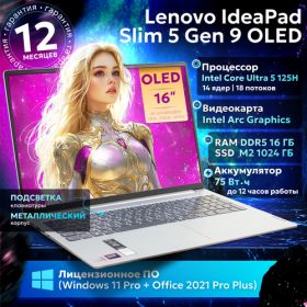 Найти - 16 Ноутбук Lenovo IdeaPad Slim 5 Gen 9, 2K (2048x1280) OLED, 120Hz, 130% sRGB, Intel Core Ultra 5 125H (14 ядер, до 4.5 ГГц), RAM 16 ГБ LPDDR5X (7467 МГц), SSD 1 ТБ, Windows 11 Pro + Office 2021 Pro Plus, Алюминий, Русская раскладка