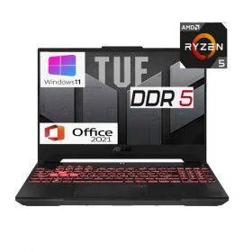 ASUS TUF (AMD Ryzen 5-7535HS 6 ядер-12 потоков/15.6" FHD IPS 144Hz, матовый, NVIDIA Advanced Optimus/1920х1080/RAM 16Gb DDR5 до 64Gb/SSD 512 GB NVMe/NVIDIA GeForce RTX 3050 4Gb/Windows 11 Pro+MS Office 21 года, Чёрный. Подсветка клавиатуры.
