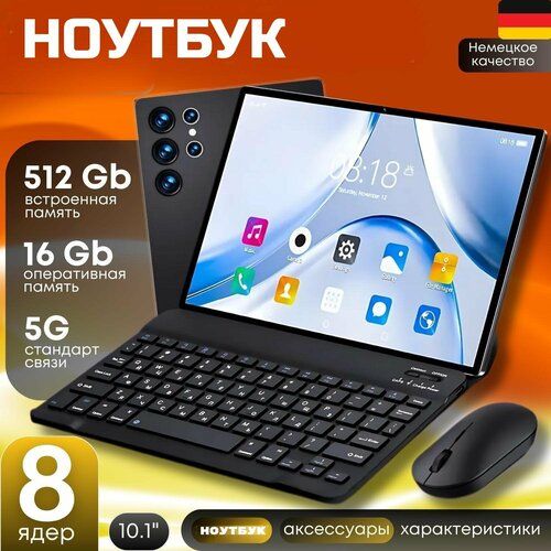 Найти - Ноутбук сенсорный андроид с клавиатурой и мышкой, 10.1 дюйм, 16 ГБ оперативной памяти, 512 ГБ встроенной памяти