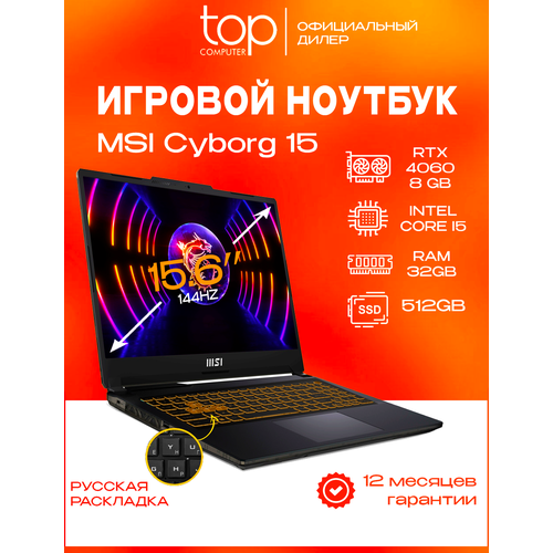 Найти - Ноутбук MSI Cyborg 15 A13VF 15.6 FHD/Core i5 13420H/32Gb/SSD 512Gb/RTX4060 8Gb/noOS/black