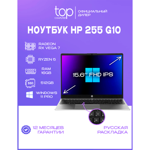 Ноутбук HP 255 G10 (859QOEA) - это мощный и надежный помощник в работе и развлечениях.