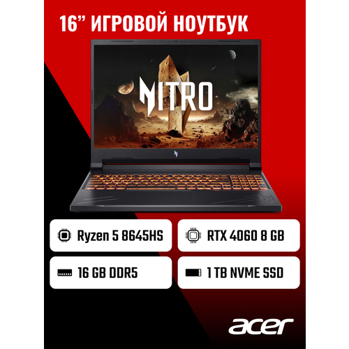 Найти - Игровой ноутбук Acer Nitro V 16 ANV16-41-R7HN / AMD Ryzen 5 8645HS / RTX 4060 / 16ГБ DDR5 / SSD 1ТБ / без ОС (NH. QRUCD.005)