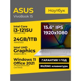 Найти - Ноутбук Asus Vivobook 15 15.6 IPS FHD i3-1215U 24ГБ 1ТБ UHD Graphics Серебристый Windows 11+Office 2021