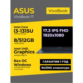 Найти - Ноутбук Asus Vivobook 17 17.3 IPS FHD i3-1315U 8ГБ 512ГБ UHD Graphics Синий Без ОС