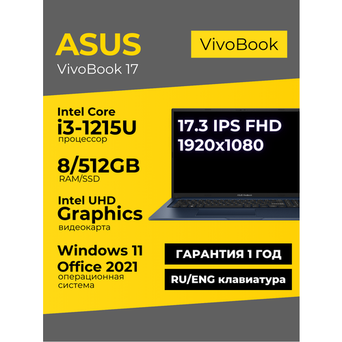 Найти - Ноутбук Asus Vivobook 17 17.3 IPS FHD i3-1215U 8ГБ 512ГБ UHD Graphics Синий Windows 11+Office 2021