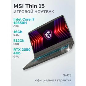 Найти - Ноутбук игровой MSI Thin 15 B12UCX-3061XRU Intel Core i7-12650H, 16ГБ, 512ГБ, NVIDIA GeForce RTX 2050 (4 Гб), 15.6 1920x1080 144Гц IPS, noOS (9S7-16R831-3061)