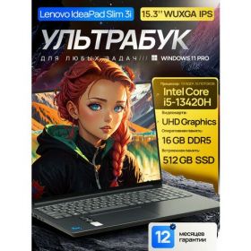 Найти - 15.3 Ноутбук Lenovo IdeaPad Slim 3i Gen 10, IPS WUXGA, Intel Core i5-13420H (4.6 ГГц), RAM 16 ГБ LPDDR5, SSD 512 ГБ, Intel UHD Graphics, Windows 11 Pro + Microsoft Office 2021, Grey, Русская раскладка, Металлическая крышка