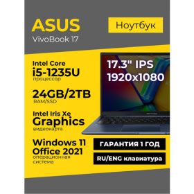 Найти - Ноутбук Asus Vivobook 17 17.3 IPS 1920x1080 Intel Core i5-1235U 24ГБ 2ТБ Intel Iris Xe Синий Windows 11+Office 2021
