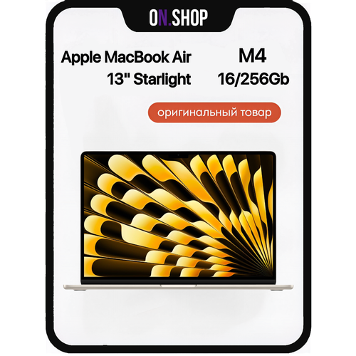 Найти - Ноутбук Apple MacBook Air 13 2025 M4 (13.6/16GB/256GB SSD/Apple graphics 10-core) Starlight (английская раскладка)