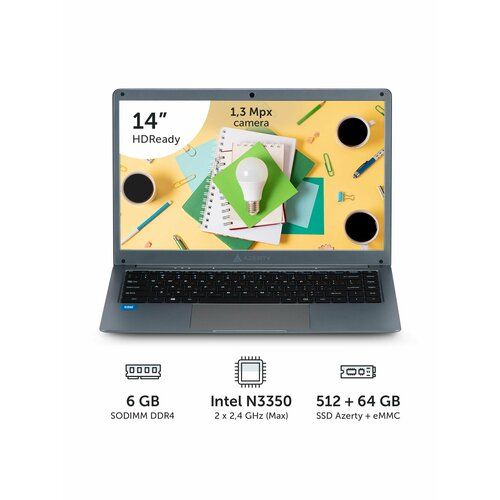 Найти - Ноутбук Azerty AZ-1406 (14 TN 1366x768, Intel N3350 2х1.10GHz, 6Gb DDR4, 64Gb eMMC+512Gb SSD)