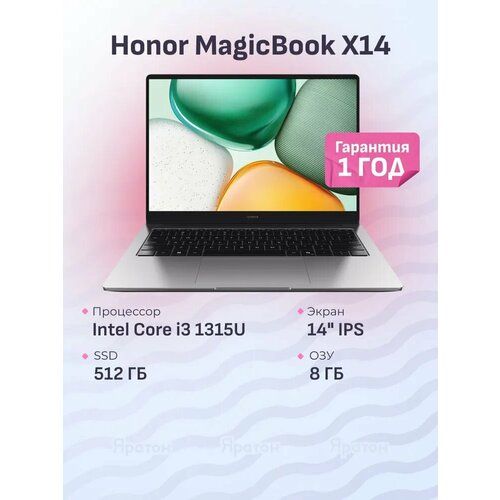 Найти - Ноутбук HONOR MagicBook X 14/ntel Core i3-1315U/8ГБ LPDDR4x/SSD 512Gb/IPS/FHD+/Grey (5301ALXS) Windows 11 Pro + Office 2021, Русская раскладка.