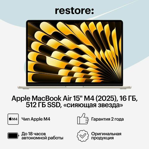 Найти - Apple MacBook Air 15 (M4, 10C CPU/10C GPU, 2025), 16 ГБ, 512 ГБ SSD, сияющая звезда