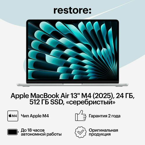 Найти - Apple MacBook Air 13 (M4, 10C CPU/10C GPU, 2025), 24 ГБ, 512 ГБ SSD, серебристый