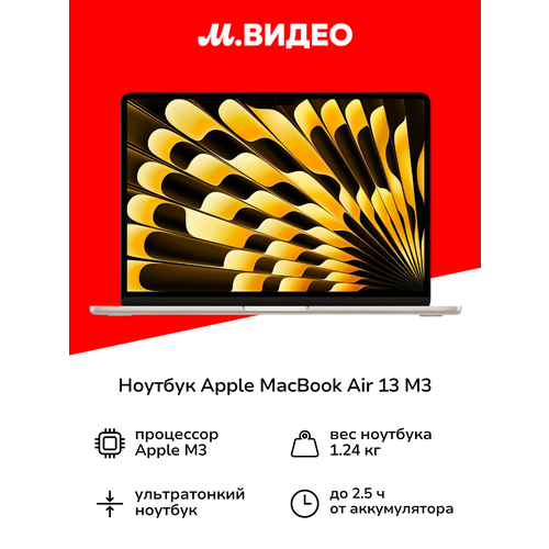 Найти - Ноутбук Apple MacBook Air 13 M3 8 core/10 core/8/512/Starlight (MRXU3)