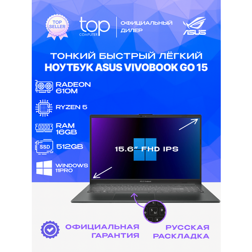 Найти - Ноутбук ASUS Vivobook Go 15 E1504FA 15.6 IPS/AMD Ryzen 5 7520U/16ГБ LPDDR5/512ГБSSD/WIN11PRO
