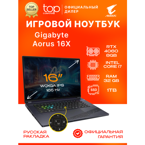 Ноутбук AORUS 16X Core i7-13650HX/16Gb/SSD1Tb/RTX4060 8Gb/16.0"/IPS/WQXGA/Dos/gray (9KG-43KZC54SD) - мощный игровой ноутбук от GIGABYTE, который станет отличным выбором для геймеров и профессионалов.