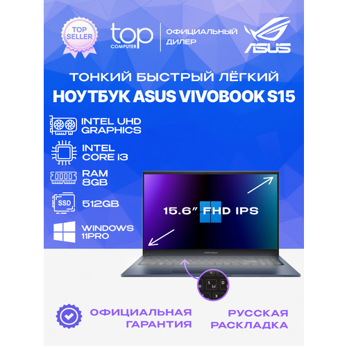 Найти - Ноутбук ASUS Vivobook 15 X1504ZA 15.6 IPS FHD /1920x1080/ Core i3 1215U/8Gb/SSD512Gb/WIN11PRO/blue