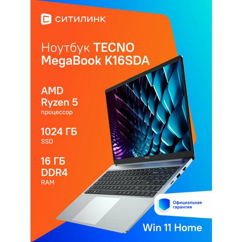 Найти - Ноутбук Tecno MegaBook K16SDA Ryzen 5 7430U/16Gb/SSD1Tb/16