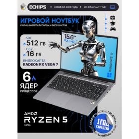 Мощный ноутбук для работы, учебы и игр Echips Atlant 15.6 1920x1080 IPS Ryzen 5 7430U 16GB RAM SSD 512GB Win 11 Home