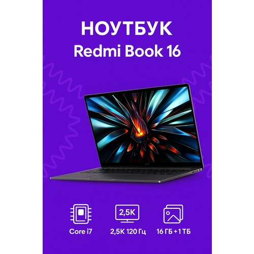 Найти - Ноутбук Redmi Book 16 2024 i7-13620H/2.5K/120Hz/16GB+1TB grey JYU4617CN (английская клавиатура) CN