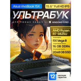 Найти - 15.6 Ноутбук ASUS VivoBook 15X IPS, AMD Ryzen 7 5825U (8 ядер), RAM 16 ГБ DDR4, SSD 2 ТБ, AMD Radeon RX Vega 8, Windows 11 Pro + Office 2021 Pro Plus, Русская раскладка, ЕАС