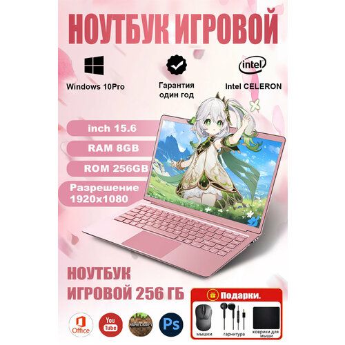 Найти - Игровой ноутбук N4000, Windows 10, розовый, 15,6, 256Гб, 8Гб,Подарок с Любовью: Лаконичный Ноутбук для Учёбы и Игp