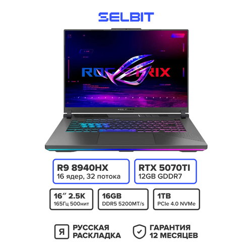 Найти - Игровой ноутбук ASUS Strix G16 2025, Ryzen 9 8940HX, RTX 5070Ti, RAM 16ГБ SSD 1ТБ, Русская раскладка, Черный