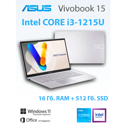 Найти - Ноутбук ASUS Vivobook ,15.6, Intel Core i3-1215U, 16ГБ, 512ГБ, Intel UHD Graphics, Win11Pro, Silver, Рус. раскладка