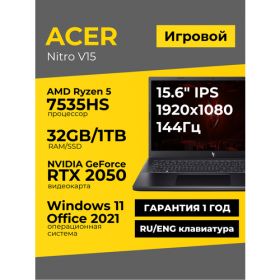 Найти - Игровой ноутбук Acer Nitro V15 15.6 IPS FHD Ryzen 5 7535HS 32ГБ 1ТБ GeForce RTX 2050 Черный Windows 11+Office 2021