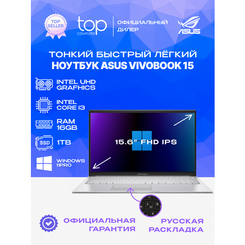 Найти - Ноутбук Asus Vivobook 15 X1504VA 15.6IPS FHD/Core i3 1315U/16GB/1TB/Intel UHD/Win11pro/серебристый