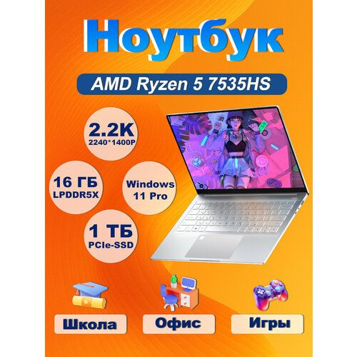 Найти - Ноутбук Ninkear S14, 14 дюймов, 2.2K UHD, AMD Ryzen 5 7535HS, 16 ГБ DDR5 + 1 ТБ PCI-E SSD, Windows 11 Pro