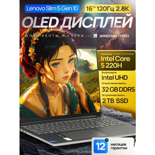Найти - 16 Ноутбук Lenovo IdeaPad Slim 5 Gen 10 (2025), 2.8K OLED, 130% sRGB, 120 Гц, Intel Core 5 220H (12 Ядер, 4.9 ГГц), RAM 32 ГБ LPDDR5, SSD 2 ТБ, Intel UHD Graphics, Windows 11 Pro + MS Office 2021 Pro Plus, Русская раскладка, Металл