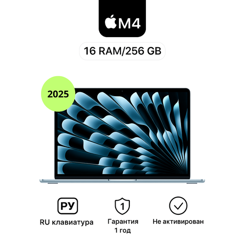 Найти - Ноутбук Apple MacBook Air 13 (2025), M4, 16/256Gb (MC6T4), Sky Blue Русская клавиатура