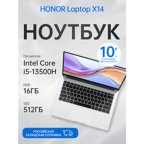 Найти - 14Ноутбук Honor MagicBook X 14 , Intel Core i5-13500H,1920x1200 IPS, 16 /512ГБ Intel Iris Xe Graphics, серебристый