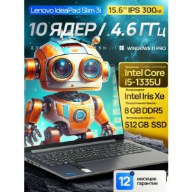 Найти - 15.6 Ноутбук Lenovo IdeaPad Slim 3i, Intel Core i5-1335U (10 ядер, до 4.6 ГГц), Intel Iris Xe Graphics, RAM 8 ГБ DDR5, SSD 512 ГБ, Windows 11 Pro + Microsoft Office 2021 Pro Plus, Arctic Grey, Русская раскладка