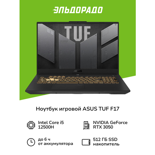 Найти - Ноутбук игровой ASUS TUF F17 FX707ZC4-HX097/17.3/Core i5-12500H/16/512/RTX 3050/NoOS/Grey (90NR0GX1-M00740)