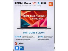 Ноутбук Xiaomi Redmi Book 16 (2025), Intel Core 5 220 H/2.5К- 120Hz /RAM32 ГБ-SSD 1 TБ, Windows 11+ Office , Русская клавиатура, подсветка клавиатуры, металлический корпус, зарядка Type -c. 4552761011