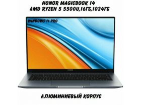 Ноутбук HONOR MagicBook 14 Ryzen 5 5500U, 16ГБ, 512ГБ,14, 1920x1080, меллический, серый, IPS, Windows 11 Pro, Русская раскладка. 103731711024