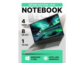 15,6 ноутбук Intel Celeron N5095 (до 2.9 GHz, 4 ядра), RAM 8 GB, SSD 1024 GB, Intel UHD Graphics, Русская клавиатура, Windows 10 Pro 102619684504